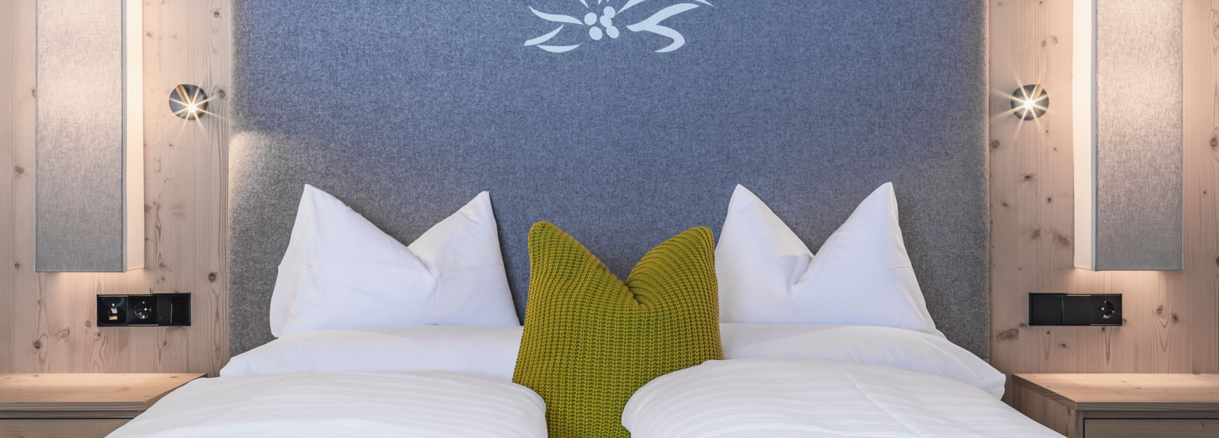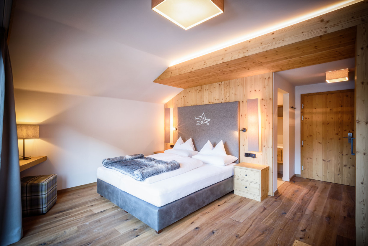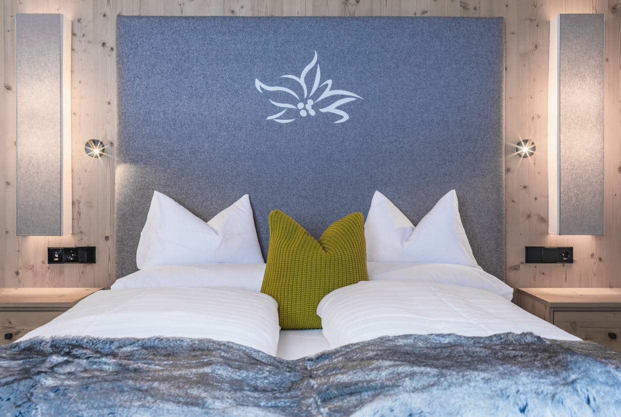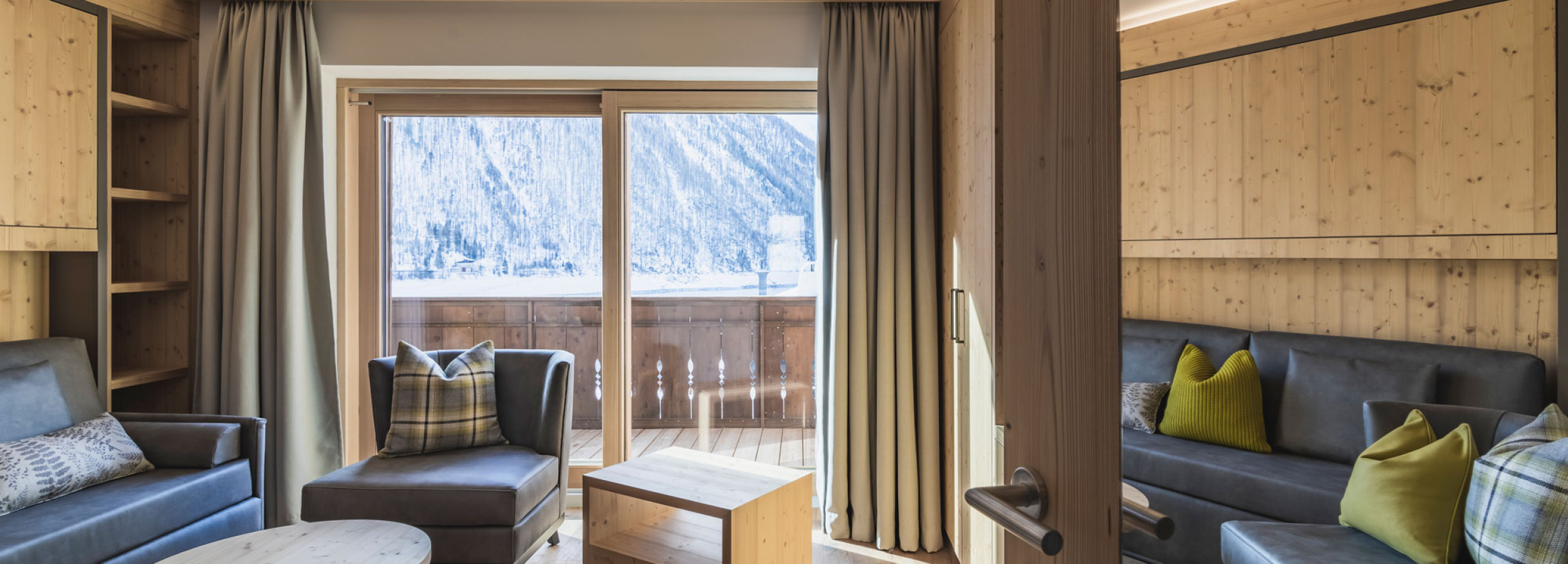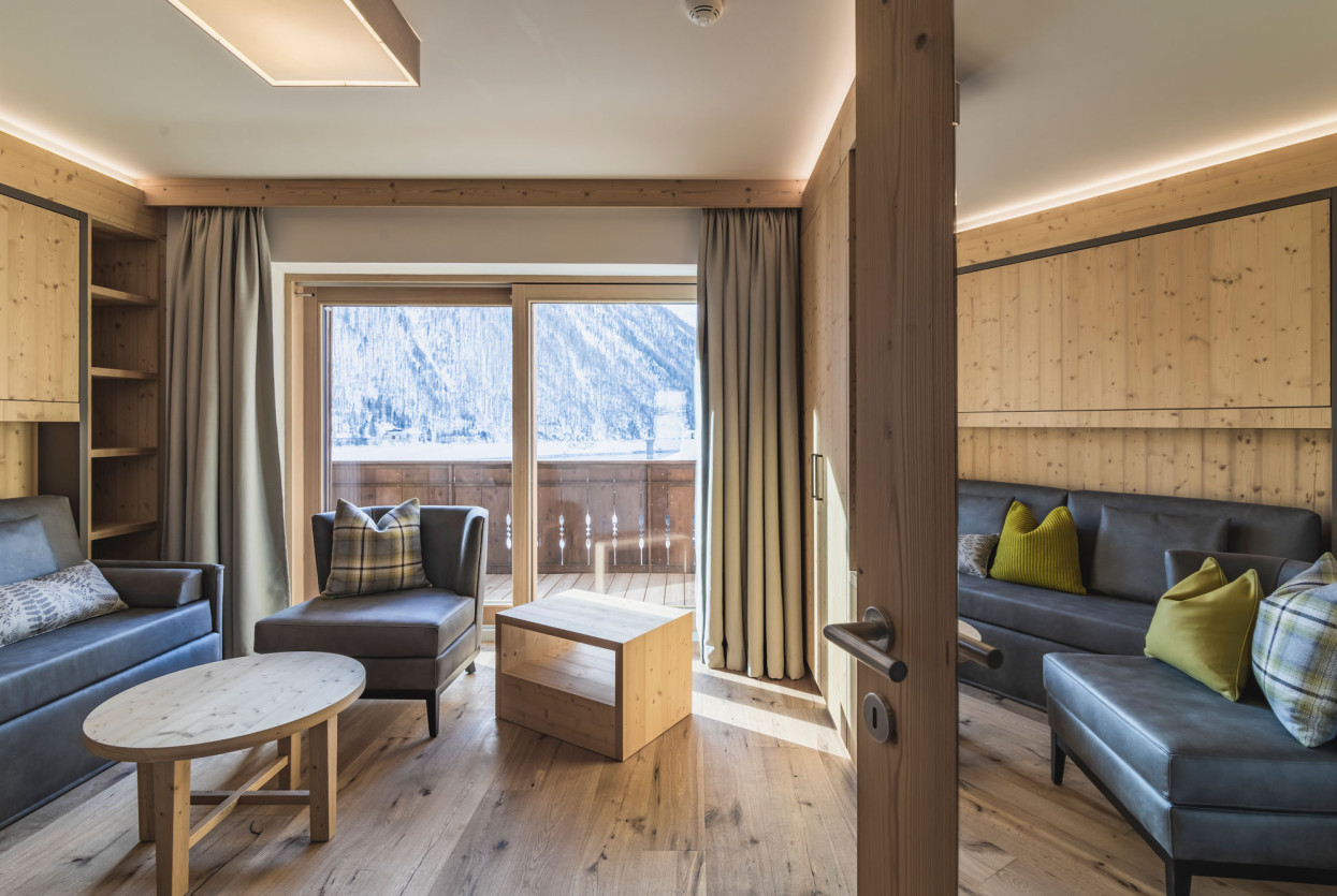 A dreamy suite with two separate bedrooms, a large panoramic window, and a private balcony. The view of the mountains and the lake will make the hearts of nature lovers soar. Our modern Suite Edelweiss Lake View can accommodate 4 people and is a cozy retreat for a delightful mountain getaway in the Senales Valley.